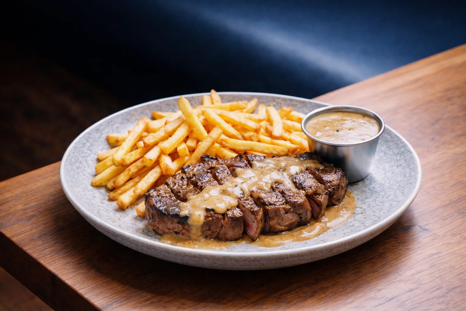 Grilled sirloin, pepper sauce