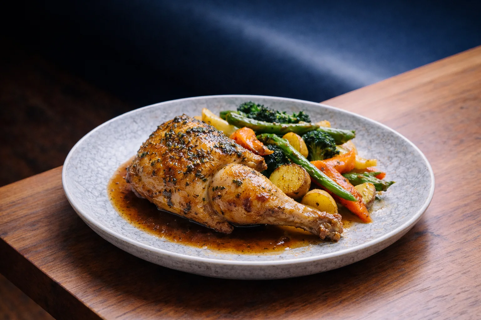 Seasonal vegetables, jus